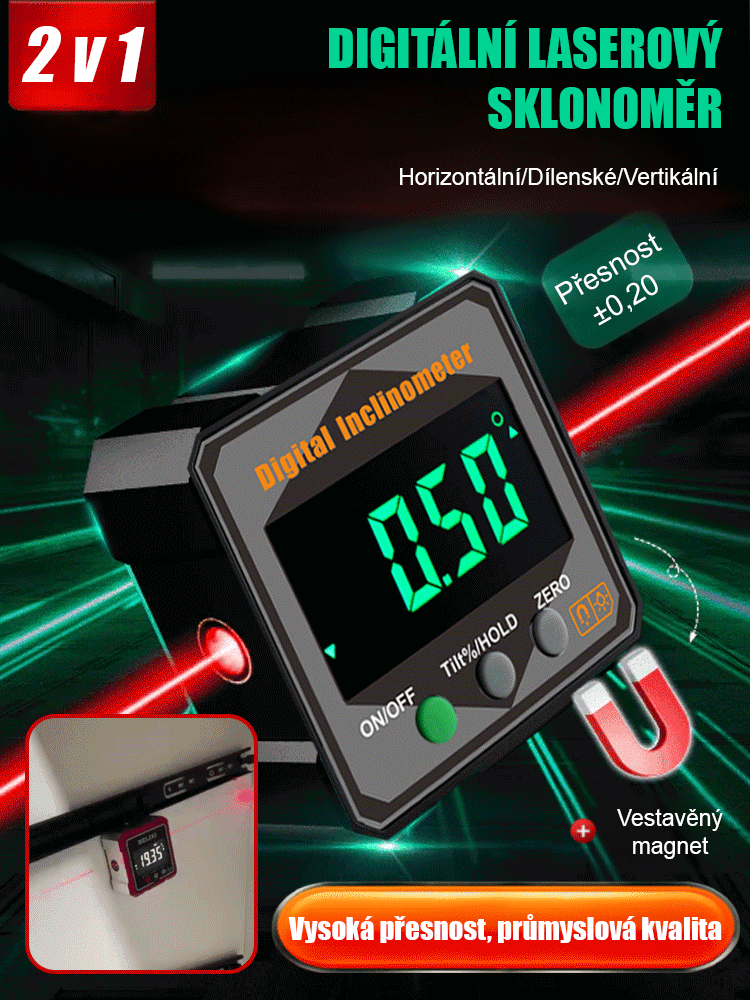 Digitální úhloměr s silným magnetem