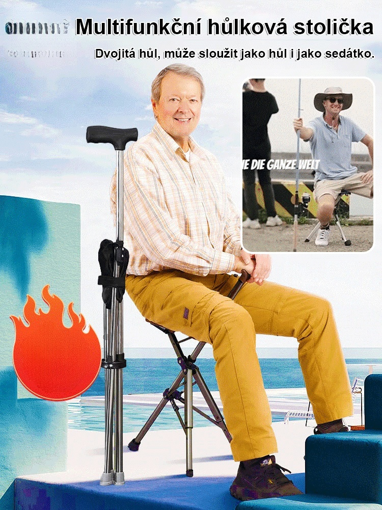 Venkovní skládací berlové křeslo pro starší chodící berličkovou stoličku