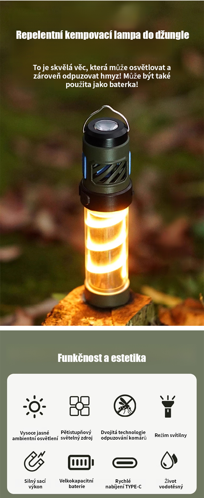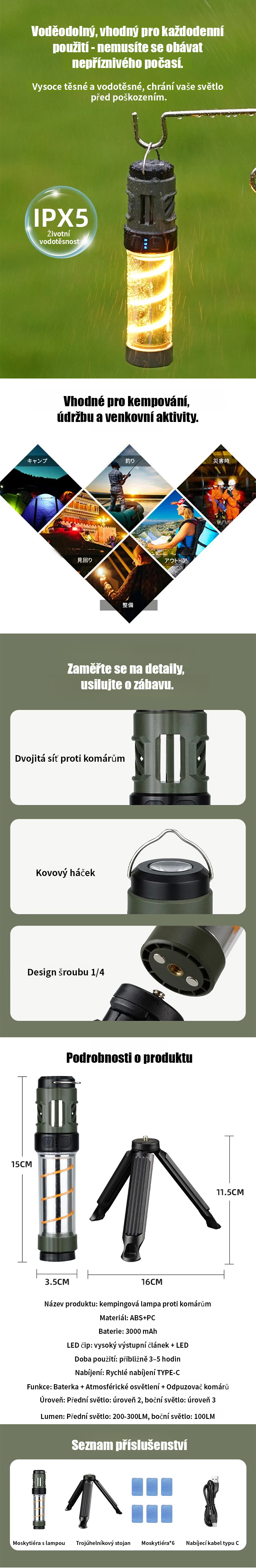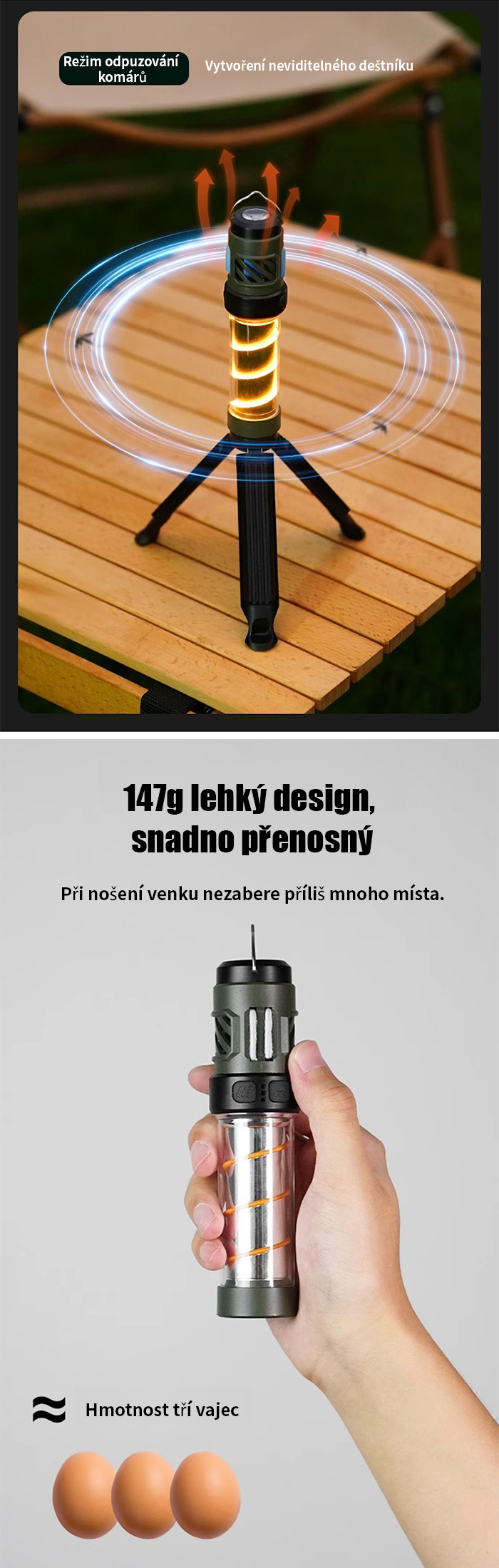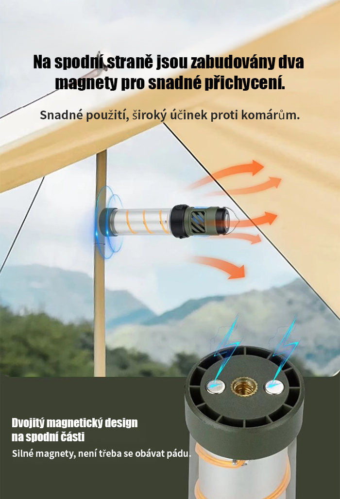 Multifunkční magnetický odpuzovač komárů a kempingová svítilna