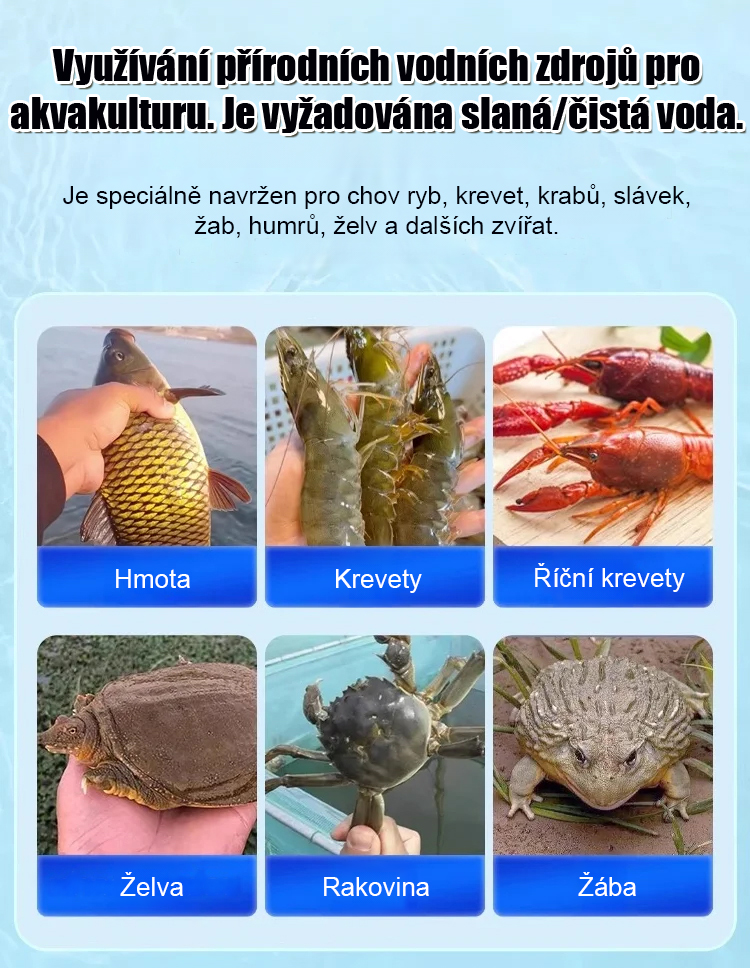 ✅ Zvýšení výnosů a zisku: Zlepšená kvalita vody podporuje rychlejší růst ryb a krevet, přirozeně zvyšuje výnosy.